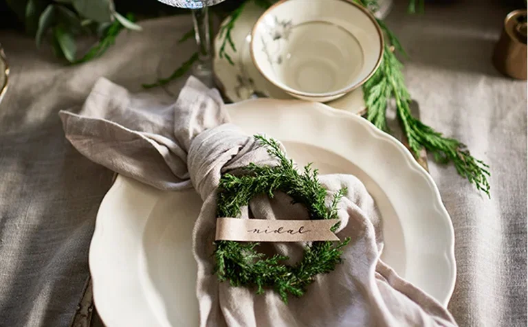 Create small wreaths for table setting - a great way to make place cards using plants. Perfect as a little extra for the Christmas party, New Year's Eve party, or other festive occasions. With beautiful mini wreaths, you create lovely place cards that are guaranteed to add that little extra to the table setting. They are nice on the Christmas table, for a cozy dinner, or for a party. Did you know that the wreath is a symbol of eternity? Perfect symbolism for the wedding!