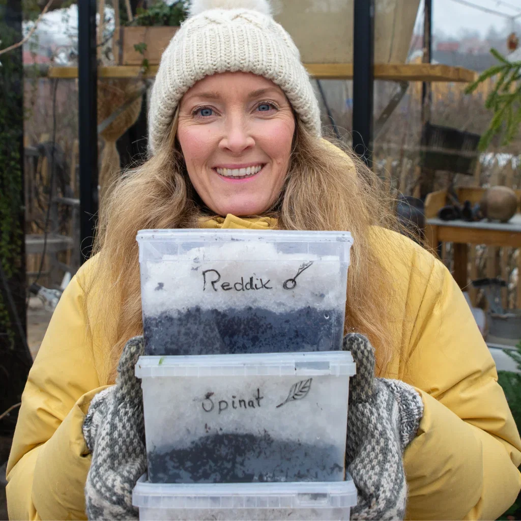 – I’ve become obsessed with sowing vegetables outdoors in candy boxes. Since we don’t have a dedicated indoor growing space, it’s absolutely perfect. The fact that the plants grow up strong and don’t need hardening saves me a lot of time. And they’re ready to harvest extra early. I highly recommend it!