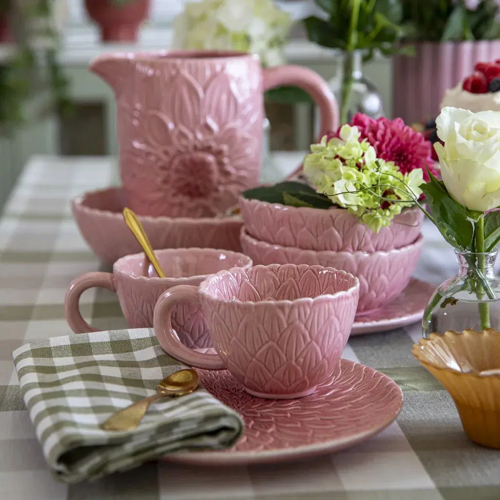 Her møtes du av myke pasteller, blomstrende mønstre og ulike teksturer. Det er alltid plass til en bukett med friske snittblomster og gjerne litt vilt grønt som får henge lekent over kanten på blomsterpotta. Den romantiske stilen er det moderne uttrykket for cottagecore – en hyllest til livet på landet, men med mer farge, personlighet og sjarm. Alt får ta plass – gjerne samtidig. Det er overdådig og helt, helt herlig…